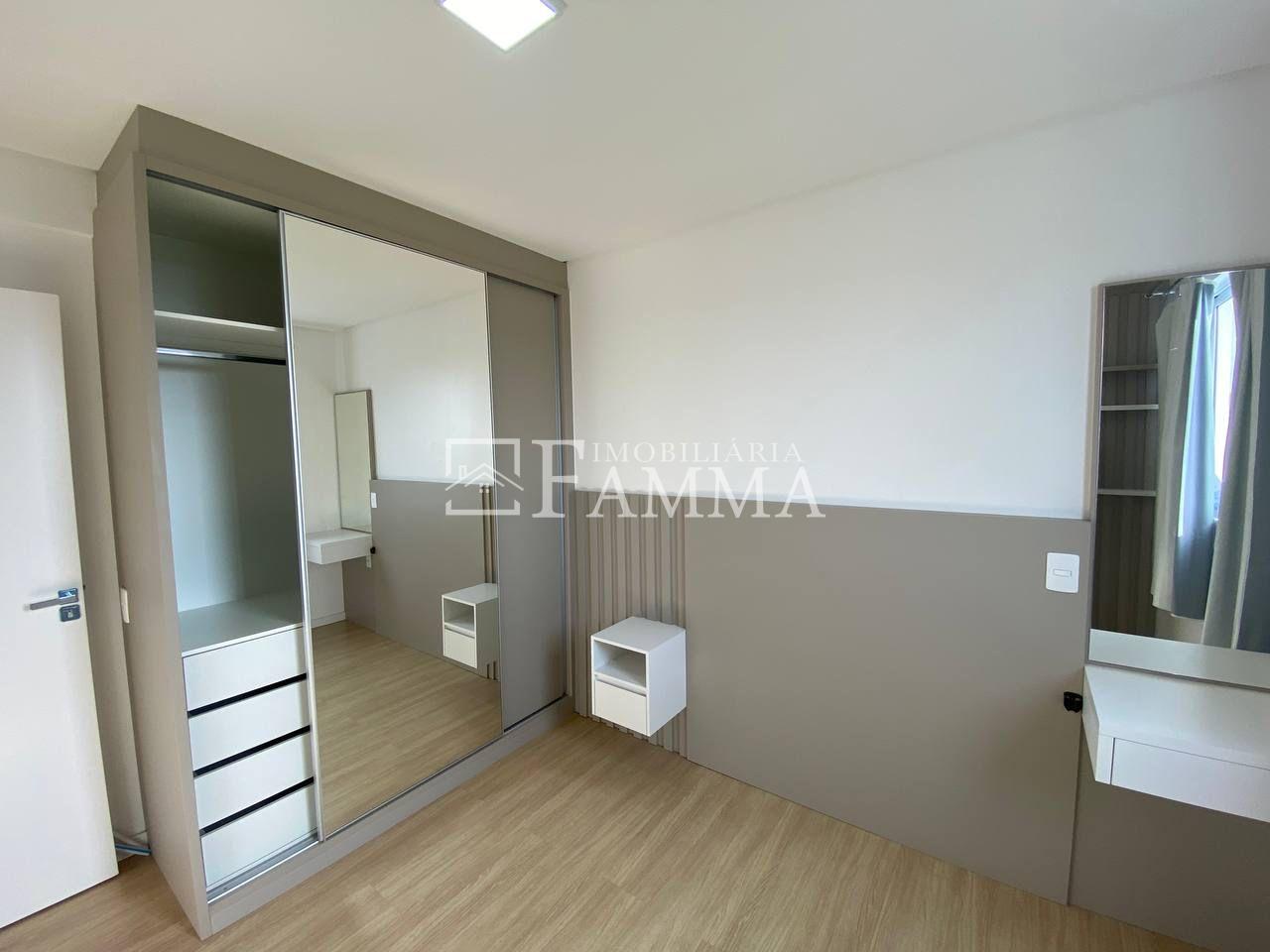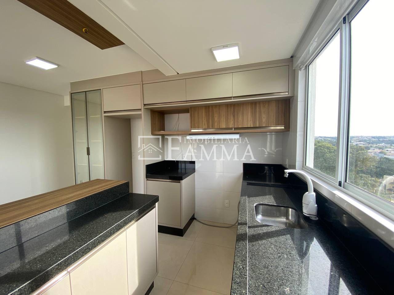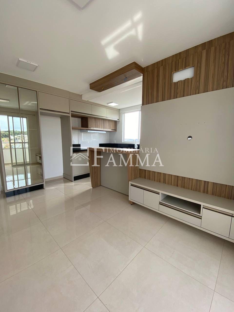 EDIFÍCIO ALIANE TONIAL - Sala de estar: estante rack com painel; portas em vidro de correr. - Cozinha planejada: armários novos; sugar; bancada; bastante iluminação natural. - Lavanderia: balcões para utensílios. - Sacada com Churrasqueira: pia para apoio. - 1 Banheiro: cuba; balcão; detalhes em 3D. - 03 Quartos: - 1° quarto mobiliado: roupeiro, painel para Tv, criado mudo suspenso; - espaços amplos; - piso laminado. - 1 Vaga de garagem.