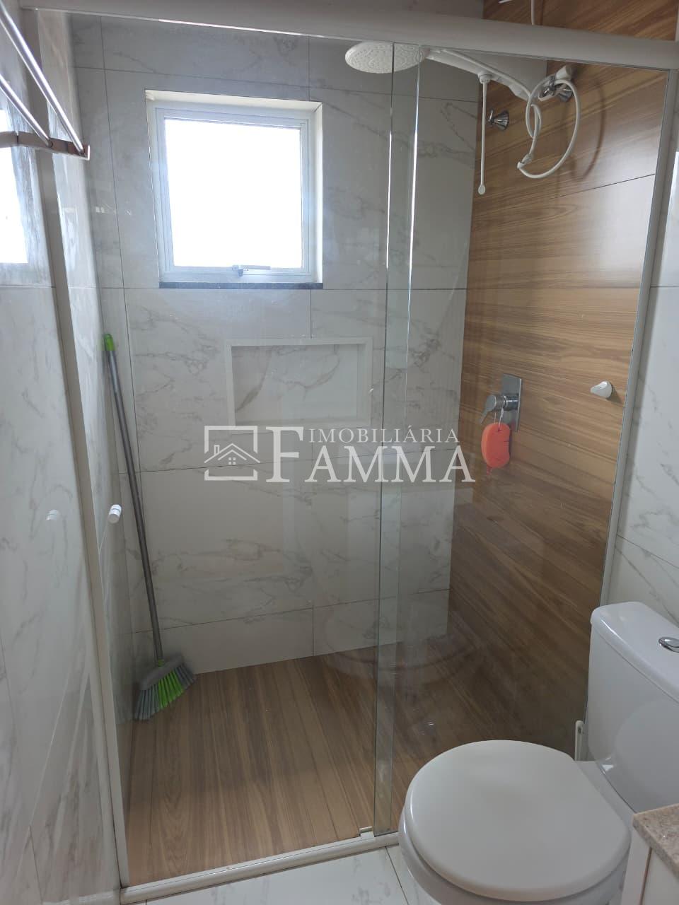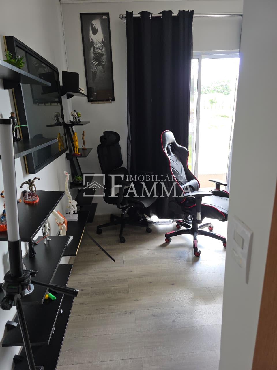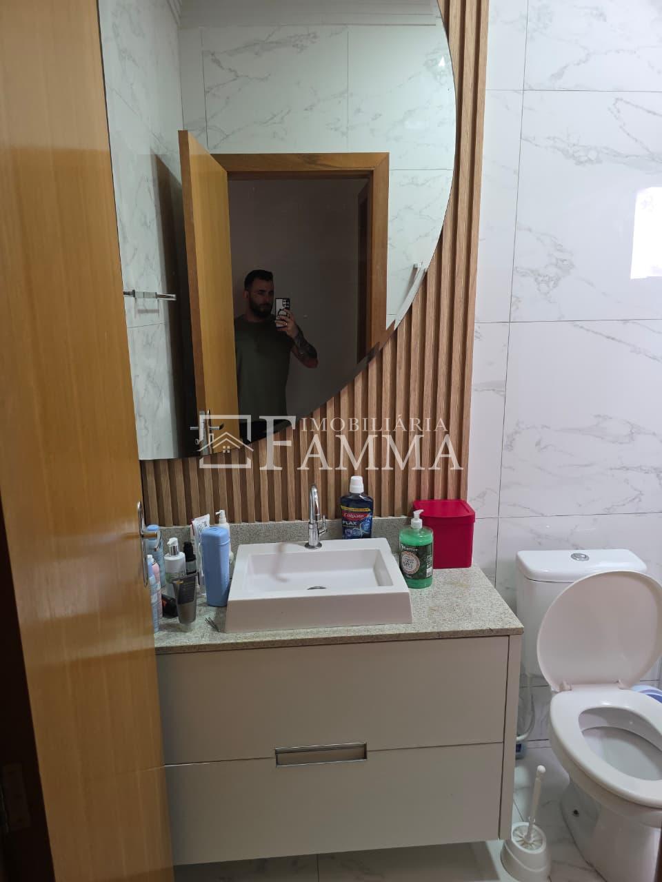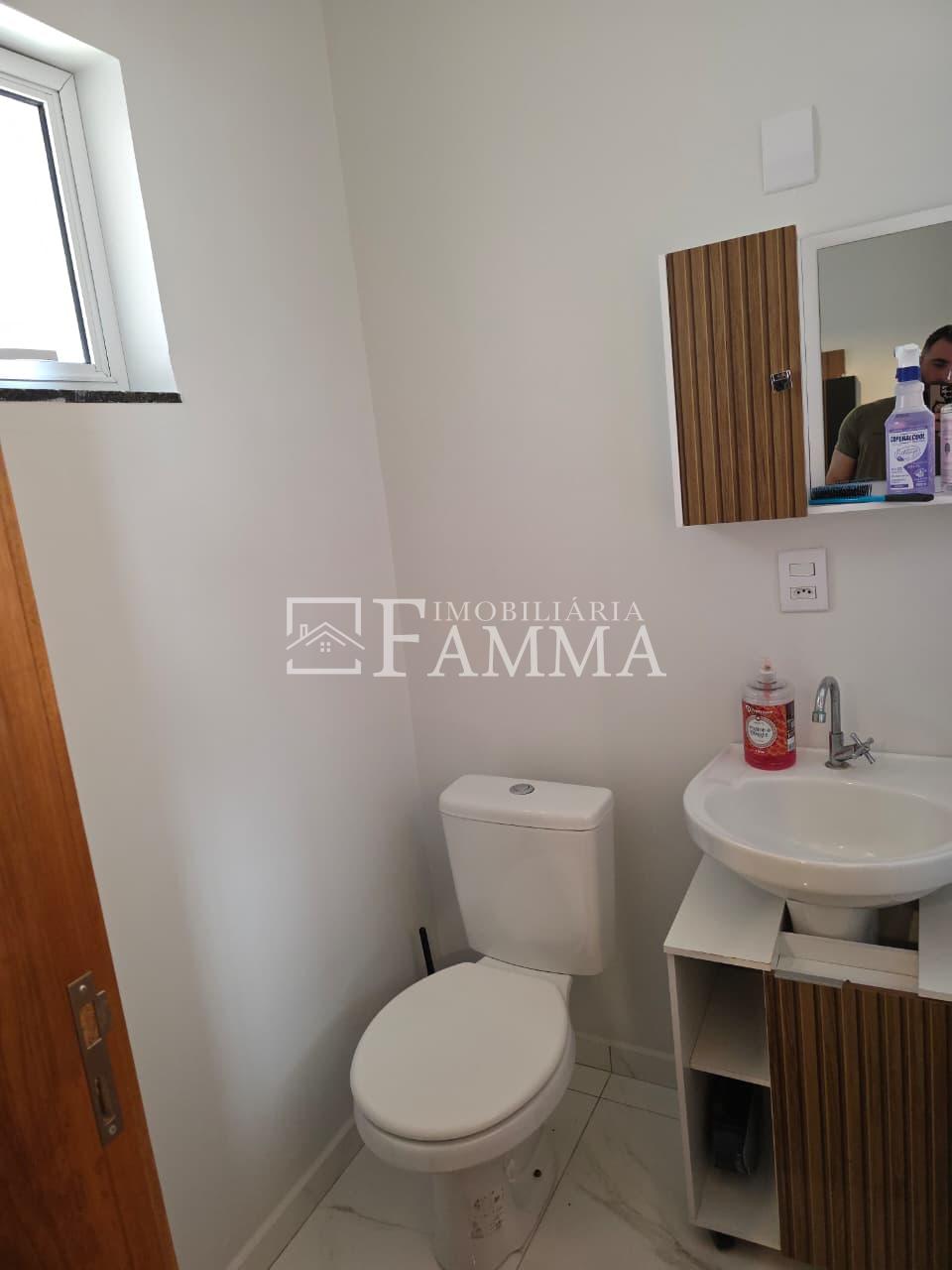 IMOBILIÁRIA FAMMA VENDE: Sobrado contendo: área construída de 124,47m² e terreno de 157,39m², composto pelas seguintes peças: Pavimento térreo: Sala, Cozinha, Lavanderia, 01 Vaga de garagem coberta, bancada churrasqueira, muros em torno, e portão eletrônico. Pavimento Superior: 03 dormitórios, sendo 01 suíte com sacada mais 02 quartos com sacada e 01 banheiro social OBS: Permanecem no imóvel todos os móveis fixos.