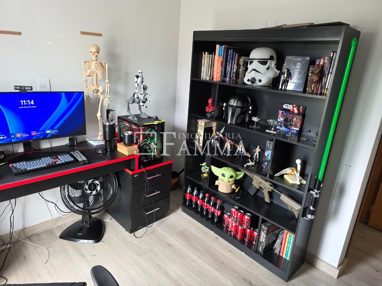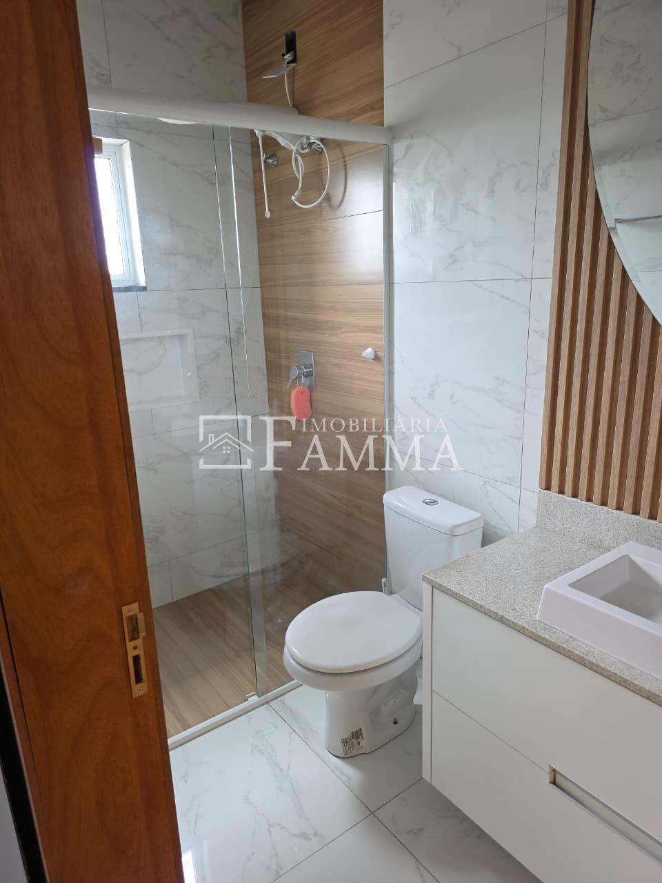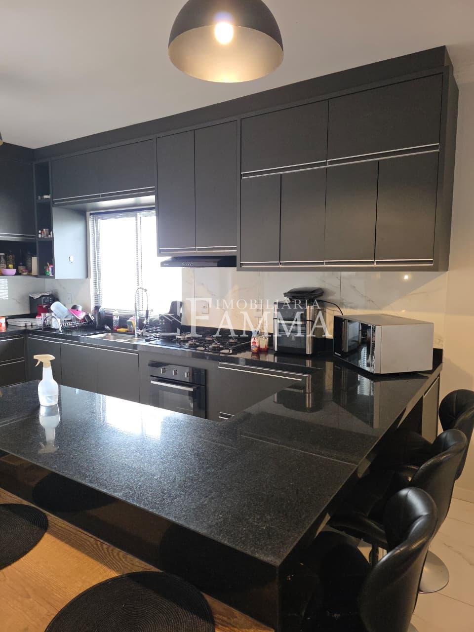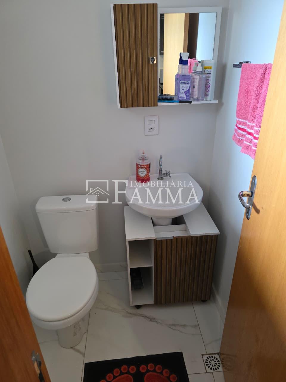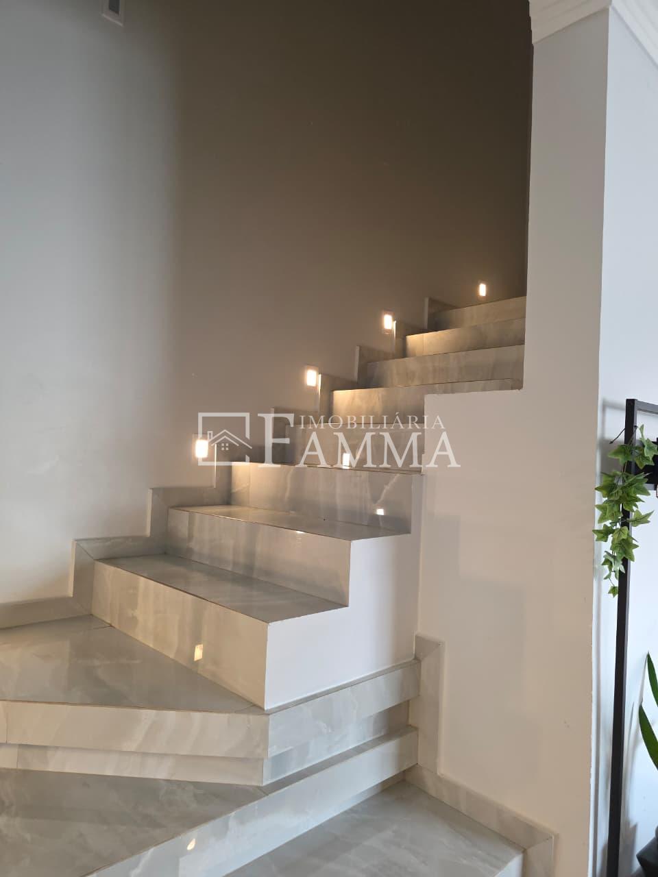 IMOBILIÁRIA FAMMA VENDE: Sobrado contendo: área construída de 124,47m² e terreno de 157,39m², composto pelas seguintes peças: Pavimento térreo: Sala, Cozinha, Lavanderia, 01 Vaga de garagem coberta, bancada churrasqueira, muros em torno, e portão eletrônico. Pavimento Superior: 03 dormitórios, sendo 01 suíte com sacada mais 02 quartos com sacada e 01 banheiro social OBS: Permanecem no imóvel todos os móveis fixos.